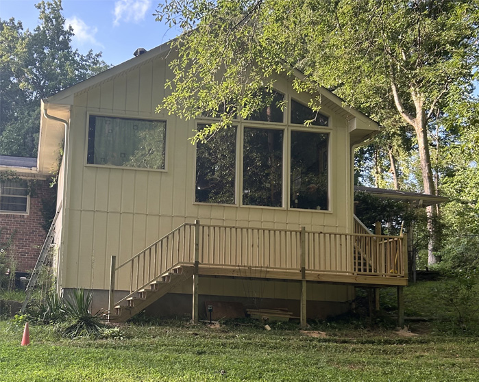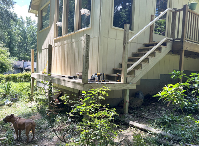| The view of the new stair and bottom deck from the kitchen side. July 12.