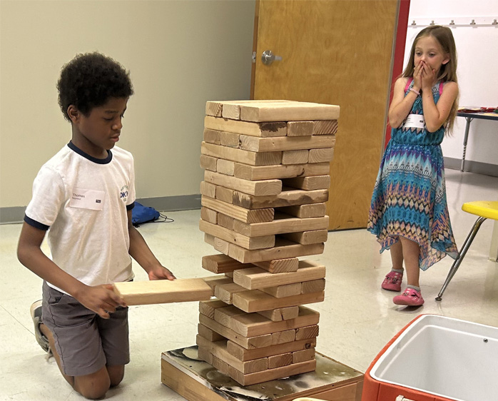 The Awana boys and girls are enthusiastic about this time and the cups and Jenga blocks are popular choices. |  |