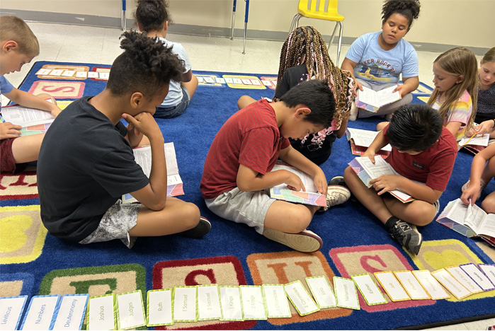 | Each Awana student was given some cards with Bible book names. They began to lay out these cards from the Old Testament in order, starting with Genesis. |