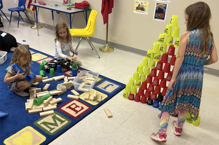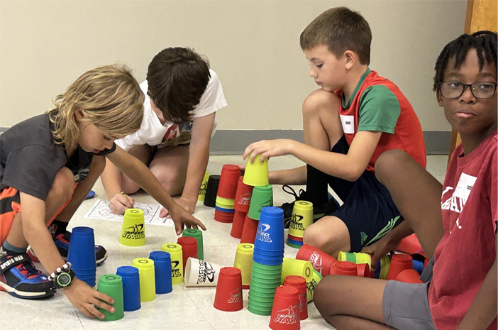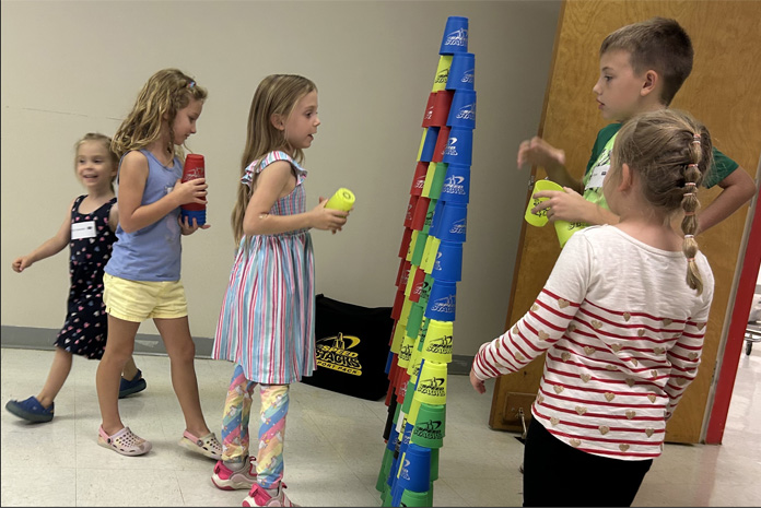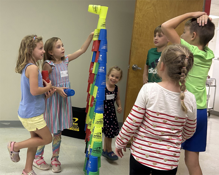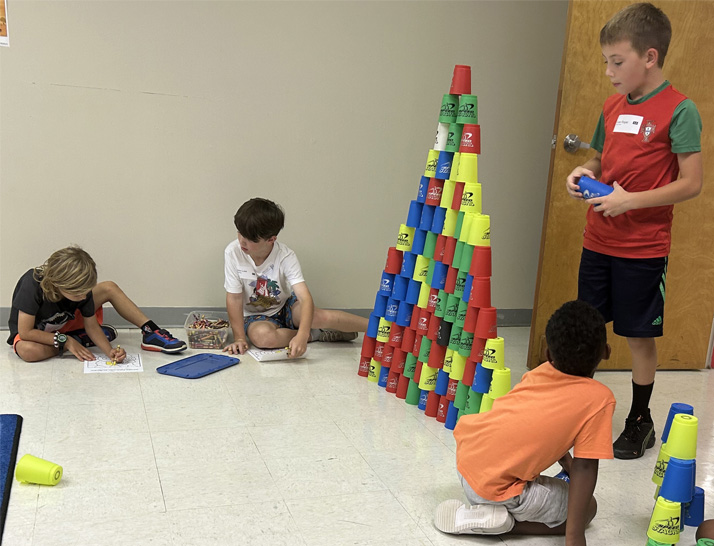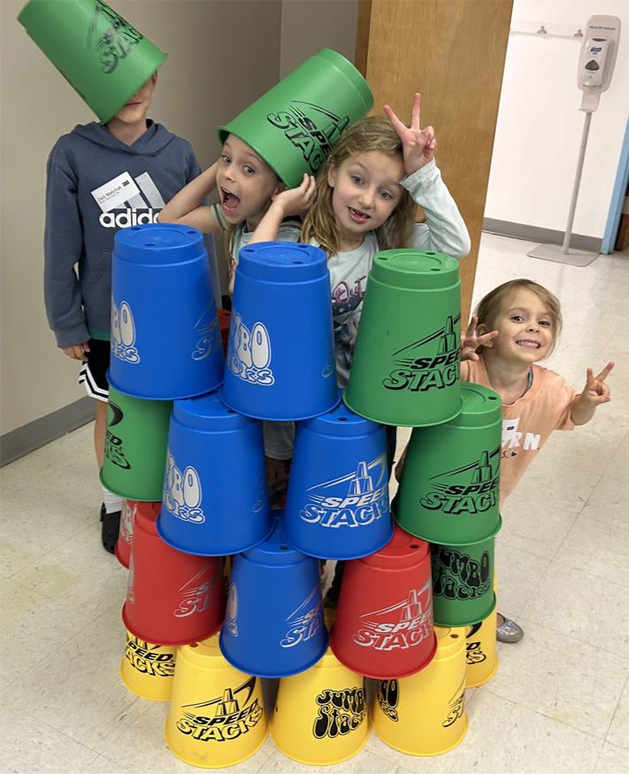 The "stacking cups" game is popular for the introductory recreation time. |  |