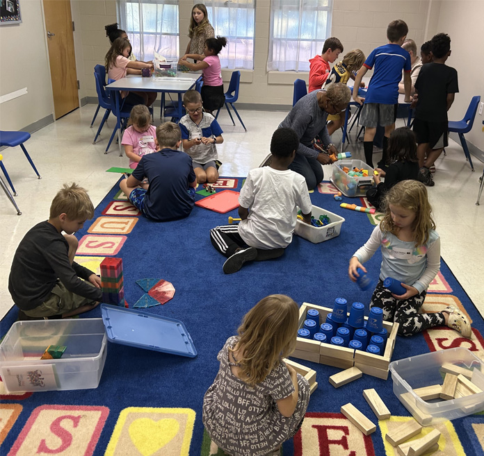 | The first few minutes are given to the Awanas as a recreation time, which might be a variety of building kits. |
