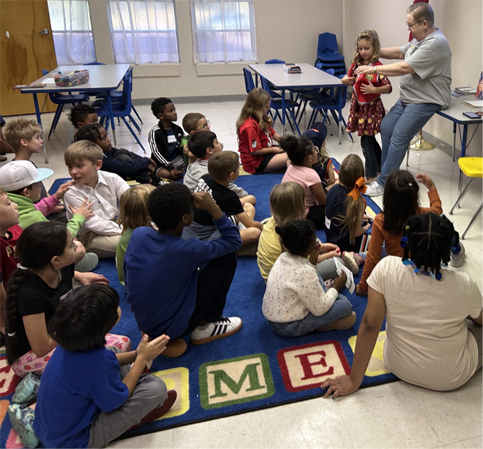 | After the advancements Becky explains the agenda for the meeting and has prayer before moving to snacks and then small group time where we work on learning scriptures. |