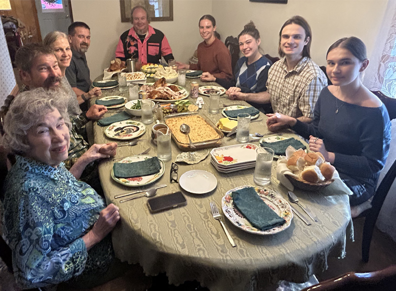 At about 20 after 12 noon, we gathered the family at the table with thankful and prayerful hearts for all the great blessings the Lord has provided. Rod gave a brief reflection on our blessings and then a prayer of thanksgiving for our family and for the food and fellowship we were privileged to enjoy.