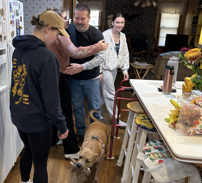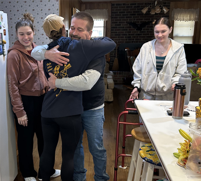| Uncle Mark made it out about 9:30 and was joyfully greeted by Jordan, Ashleigh, and Elyse |