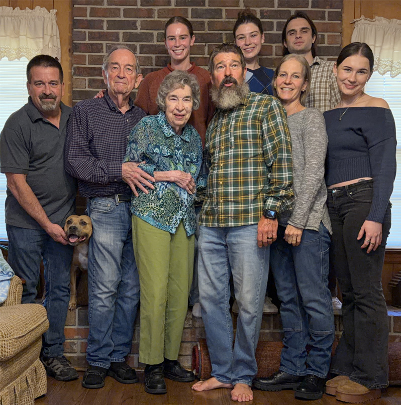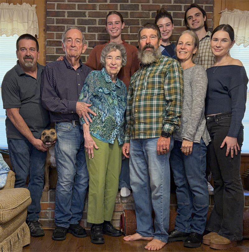 In this picture the front row is all Nave: Mark, Rod, Brenda, Jeff, Darla, Elyse. The back row is Ashleigh Nave and Jordan and Luke Zell.