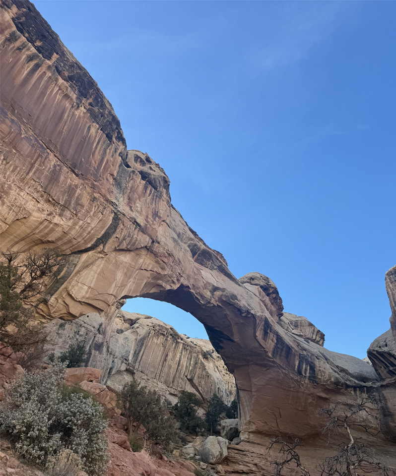 Rod and Brenda visited Capitol Reef in November of 2016. We went I-70 west from Denver, then down to Moab and Arches National Park. We approached the Capitol Reef area on Hwy 24. Why Capitol Reef? Early settlers noted that the white domes of Navajo Sandstone resemble the dome of the Capitol building in Washington, DC. Some of those early settlers thought part of it looked like a reef. We then went to Kodachrome Basin State Park and Bryce Canyon before proceeding to Zion.