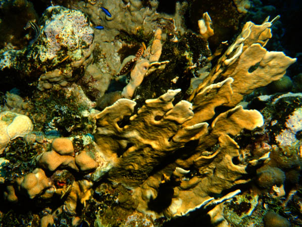 Providing yet another reason not to step on the reef is this stinging coral or fire coral.