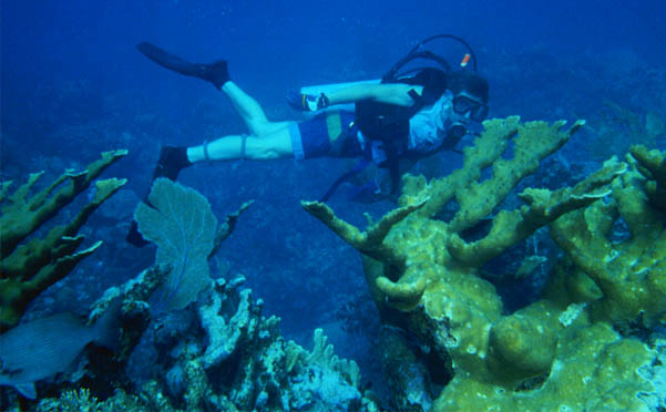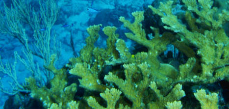 | We had never seen a stand of staghorn coral like this, nicely formed and not broken up. |