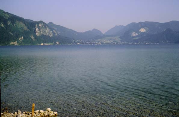 Wolfgangsee from Camp Near St. Gilgen![]() We had driven through Salzburg, Austria to St. Gilgen on the Wolfgangsee to camp at the "Lindenstrand" camping place. It is right on the lake shore with a very nice view of the lake and surrounding wooded mountains. This view is in the early morning before we took off to tour Salzburg. June 25, 1967 |