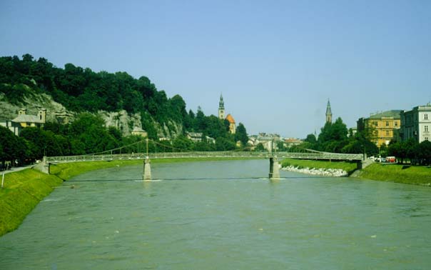 The Salzach River, Salzburg![]() This is a view nortward along the Salzach River. The Augustinerkirche is on the left and the Evangelistic Kirche is on the right. June 25, 1967 |