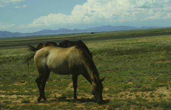 These horses on the range east of Albuquerque gave a good highlight to our view of the mountains toward the west. There was plenty of open space in eastern New Mexico along I-40. August 3, 1982.