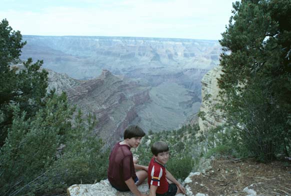 Sunrise at Yavapai Point![]() We rose early for another spectacular Grand Canyon sunrise from Yavapai Point. August 7, 1982. ![]() At Breakfast Point on East Rim![]() For three days we made it a practice to take our breakfast out to and East Rim viewpoint. Here Jeff and Mark watch the canyon as Brenda and I finish breakfast. We had risen early for another spectacular Grand Canyon sunrise from Yavapai Point. August 7, 1982.