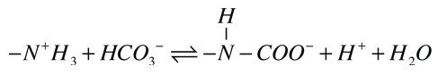 Carbon Dioxide Transport to LungsThe body's metabolic processes such as the reactions in the TCA cycle release carbon dioxide into the body fluids. This CO2 must be excreted from the body by transporting it to the lungs to be exhaled. The active metabolism in the cell produces CO2 and it reacts with water to form bicarbonate ions HCO-3 and hydrogen ions H+. As described with the Bohr effect above, this process lowers the pH of the cell and causes more oxygen to be released. In this way, the CO2 helps to provide the necessary oxygen for the cell's metabolic demands. At some point, the excess CO2 must be removed to maintain a proper balance in the cell. Whereas about 98.5% of the oxygen supply to the cells is carried by hemoglobin compared to 1.5% dissolved in the blood, the transport of CO2 is profoundly different. Carbon dioxide is more soluble than oxygen as a gas in blood, and about 5-7% of it is dissolved in the blood to be carried to the lungs. About 10% of the CO2 binds to plasma proteins or enters the red blood cells to bind to hemoglobin for transport. When carbon dioxide binds to hemoglobin it first forms bicarbonate ions HCO-3 and hydrogen ions H+ as described above and then binds to one of the amino groups of hemoglobin: ![]() The majority of carbon dioxide molecules (85%) are carried to the lungs by the bicarbonate buffer system. Carbon dioxide diffuses into the red blood cells where the enzyme carbonic anhydrase (CA) quickly converts it to carbonic acid (H2CO3). Carbonic acid is an unstable intermediate molecule that immediately dissociates into bicarbonate ions. This is a steep favorable path from CO2 to HCO-3 down its concentration gradient so that CO2 can continue to enter the red blood cells. This also produces H+ ions, which if allowed to accumulate would produce dangerous changes in the tightly regulated pH of the blood. The role of the hemoglobin in the red blood cells here is to bind these H+ ions, limiting their effect on the pH. The newly synthesized bicarbonate ions are transported out of the red blood cells into the liquid content of the blood in exchange for a chloride ion Cl-. (This is called the chloride shift.) When the blood reaches the lungs, the bicarbonate is transported back inside the red blood cells in exchange for the Cl-. The H+ ions disassociate from the hemoglobin and bind to the bicarbonate, producing the intermediate carbonic acid. This carbonic acid is converted back to CO2 by the action of the enzyme carbonic anhydrase and diffuses into the alveoli of the lungs for exhalation. ![]() The remarkable accomplishment of this chain of events is to transport large mounts of CO2 from the cell metabolism where they are released to the lungs where they are exhaled with very little change in the pH of the blood. Note that in the discussion of the Bohr effect there is discussion of pH changes from about 7.6 to 6.8 inside of cells, but the pH of the blood itself is limited in range from about 7.35 - 7.45 with serious to fatal consequences for excursions outside that range. This key enzyme, carbonic anhyrase, accomplishes what is called the bicarbonate buffer system which you make use of with every breath you take.